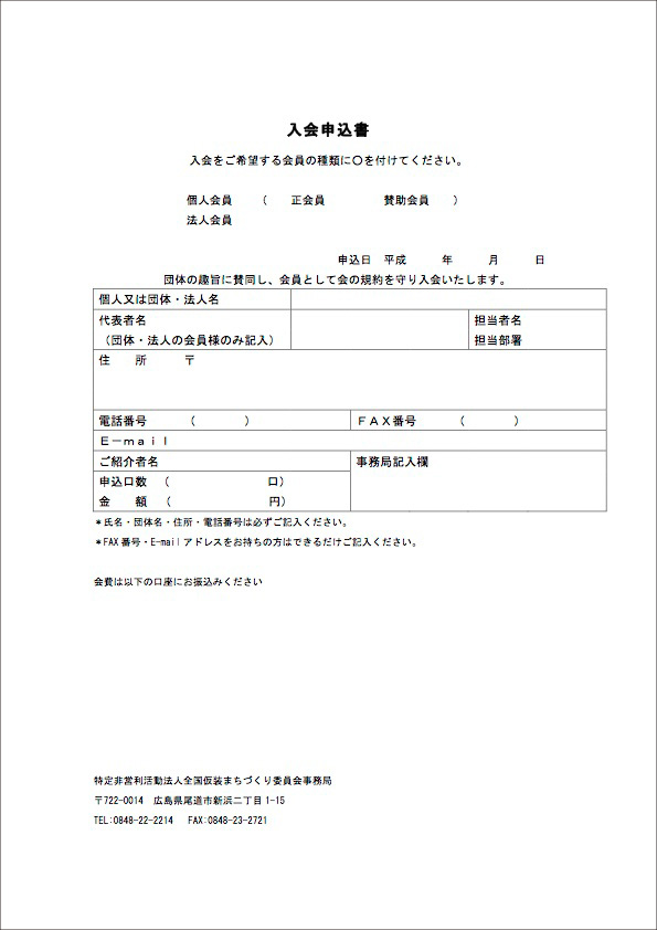 ・FAXの場合 (0848)23-2721 特定非営利活動法人全国仮装まちづくり委員会宛